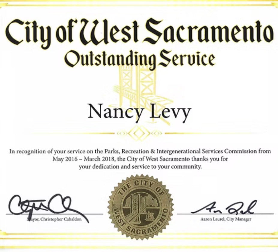 - Committee Commissioner — Age Advisory Board, West Sacramento (2016–2017)